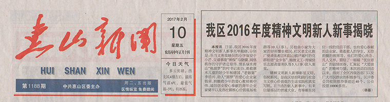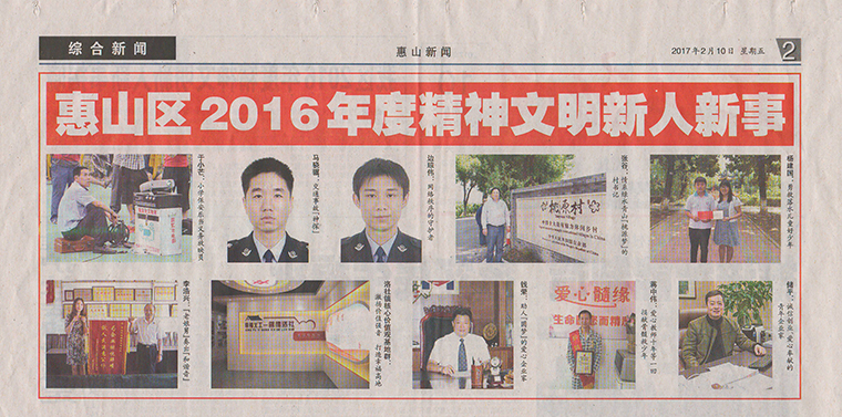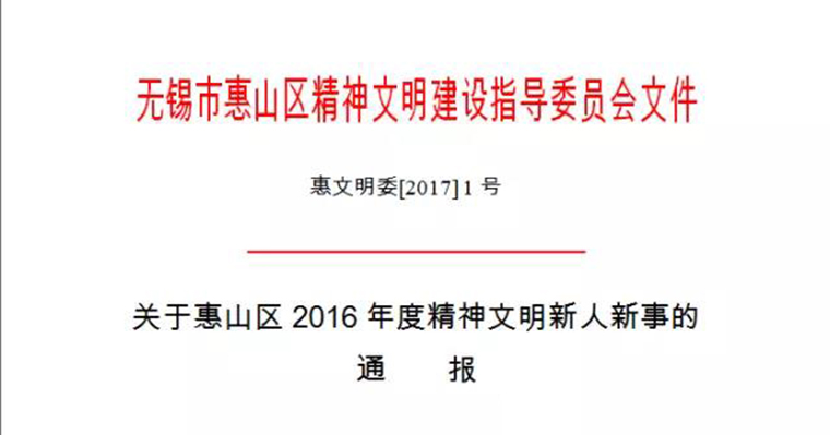 近日,惠山区文明委对“2016年度区精神文明新人新事评选”结果进行了通报,江苏新瑞贝科技股份有限公司(以下简称“瑞贝科技”股票代码:834570)董事长储平光荣当选。